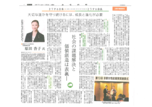 五條メディカルを事業会社として発展させ、従業員を守り、個人の成長が社会貢献につながることを目指していると意気高らに話してくださった原田さん、社会課題を解決し、売上を伸ばし、五條メディカルの利益を大きく伸ばした後、さらに「豊かな未来を真剣に考える会社」という、社会貢献に特化した別の会社を設立する夢もお持ちだそうです。今後の原田さんの活躍に注目し続け、ご一緒できることを楽しみにしております。このたびは誠にありがとうございました。