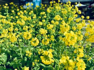 毎年この時期に菜の花が咲くお寺に。今年も咲いていました。春がそこまで。